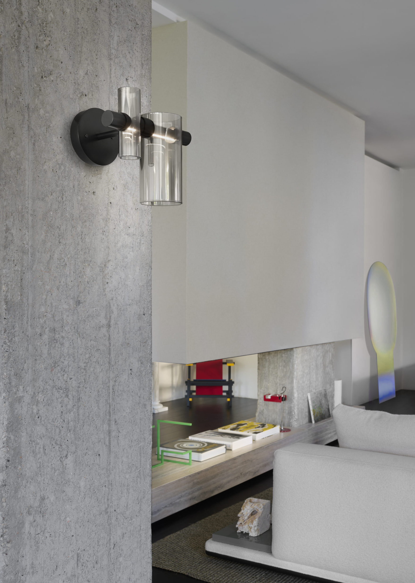 The Dancing Glass Sconce offers the same poetic elegance in a compact wall-mounted design. A single cylindrical glass element creates a soft, ambient glow ideal for hallways, bedrooms, or bathrooms. Both versions celebrate the artistry of hand-blown glass and elevate any interior with a refined, contemporary look.