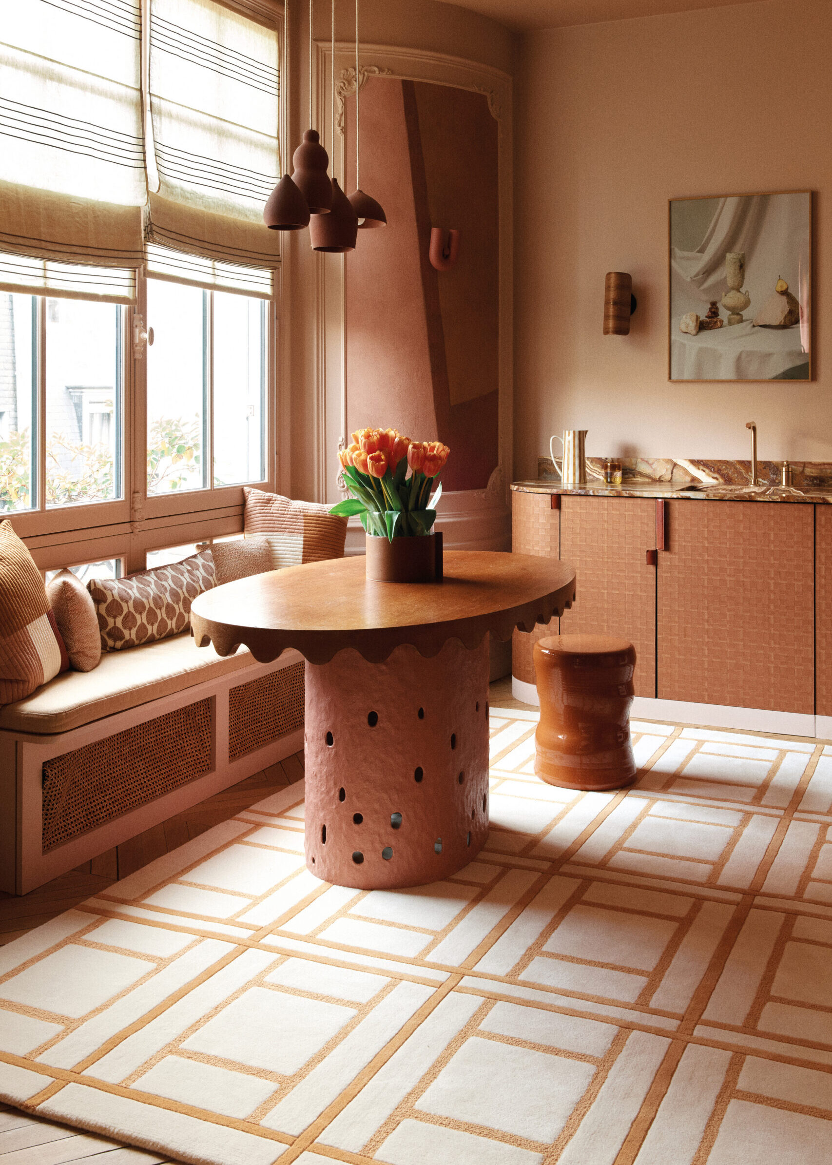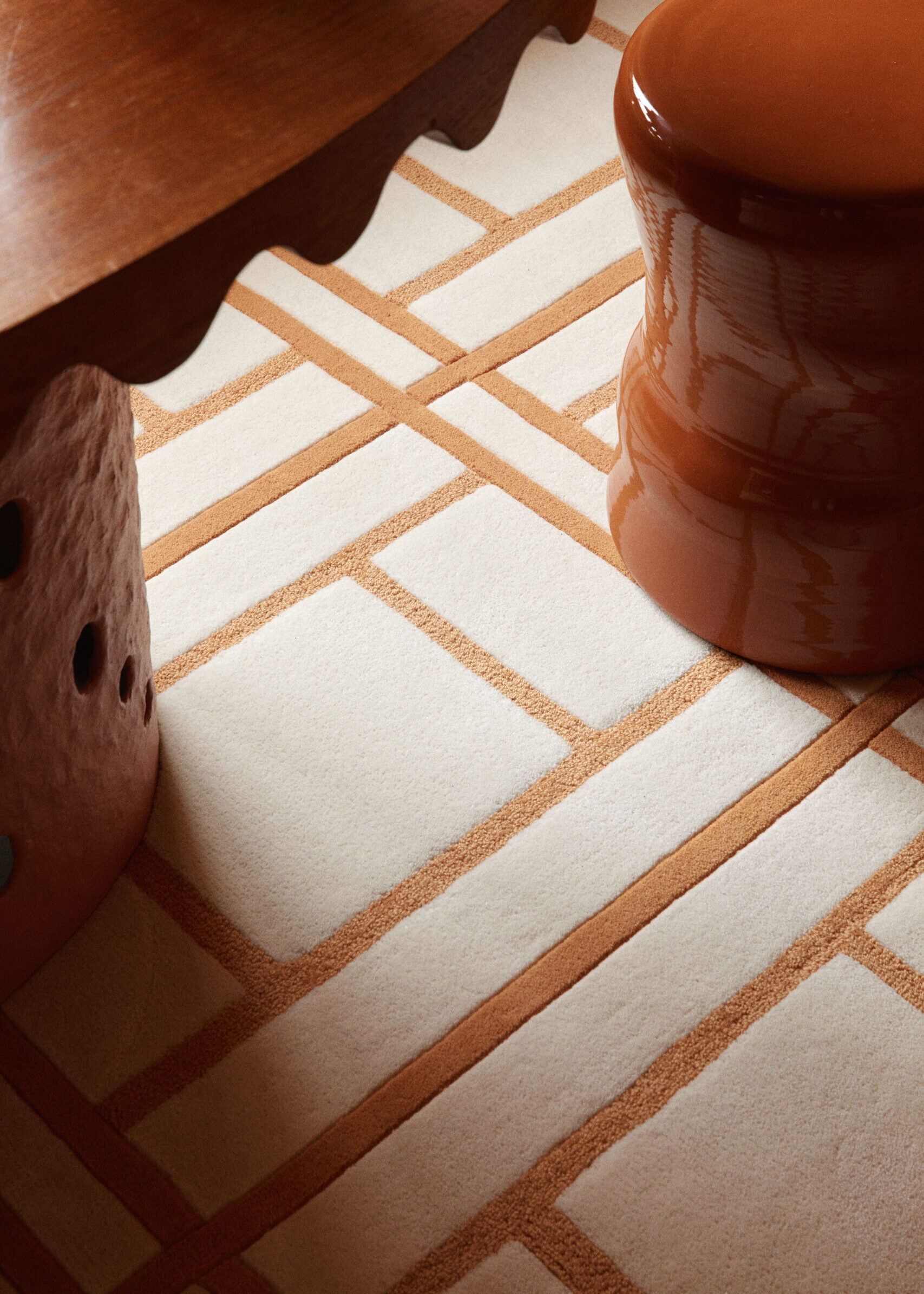 Inspired by the weaving of split rattan, this graphic rug plays with the illusion of layered construction. The lines interlace, intersect, and echo one another like a living framework. The combination of loops and velvets, crafted in handtufting, enhances the sense of depth and texture, making this structured design feel almost tangible. Éclisse celebrates artisanal geometry, standing at the crossroads between textile tradition and decorative modernity