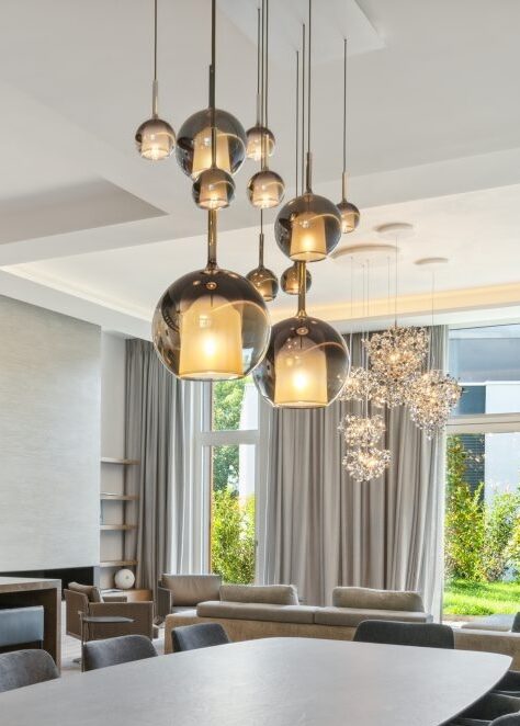 Its adjustable cords extend up to 4 meters, allowing you to customize the height and create a dynamic composition at different levels — perfect for positioning above a dining table, kitchen island, or cascading gracefully in a staircase.