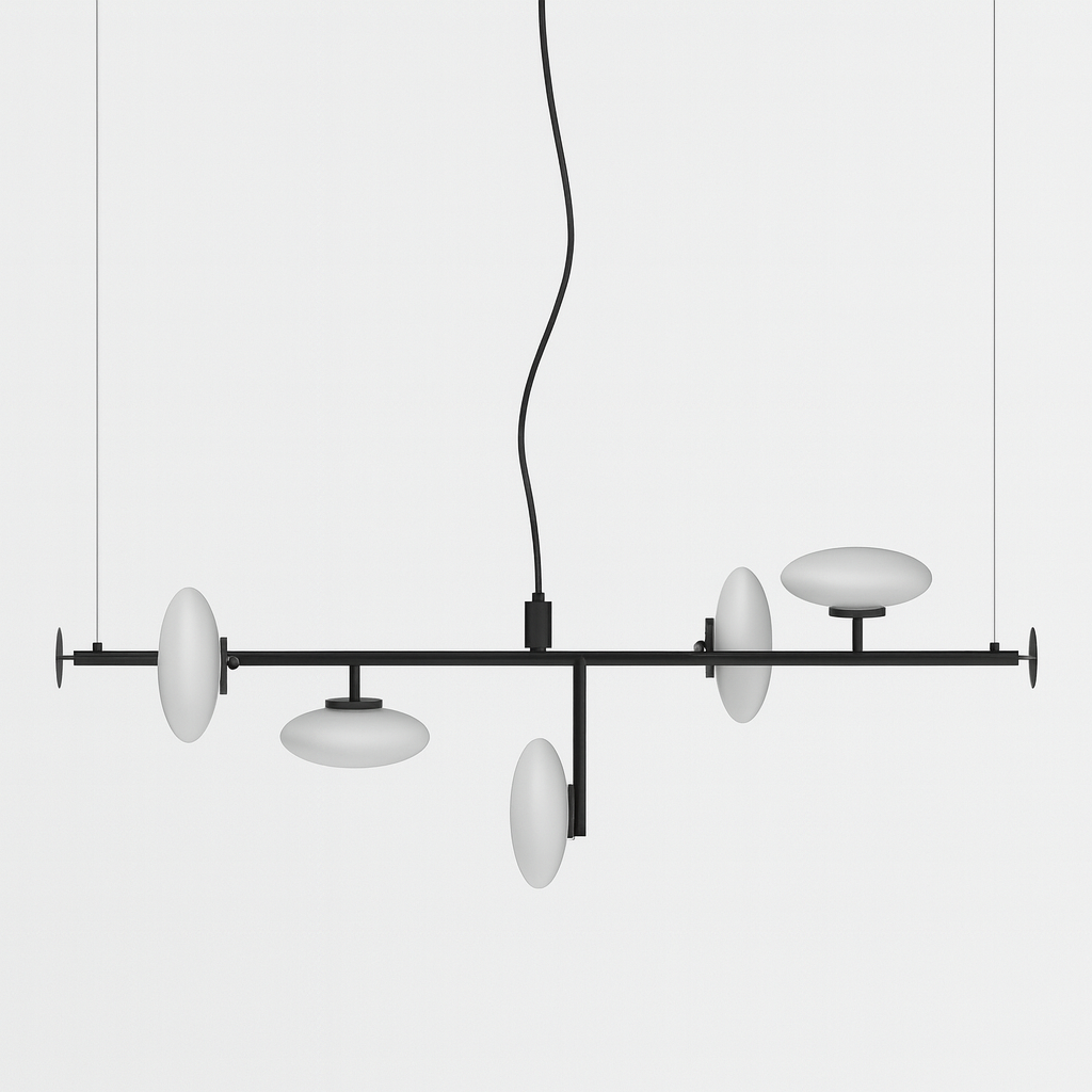 The Mami suspension lamp balances design and art with timeless elegance. Its white oval blown-glass body is reimagined with a modernist touch, creating refined pendant compositions that bring sophistication and versatility to contemporary interiors.