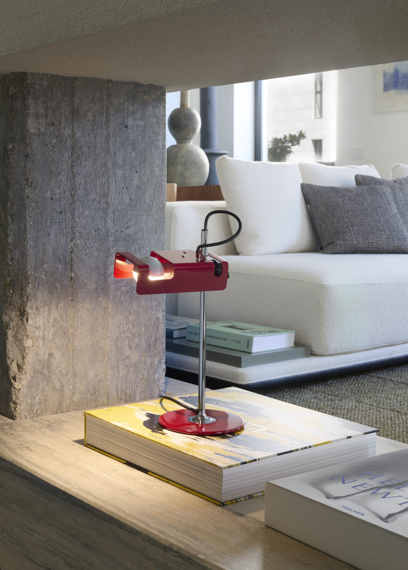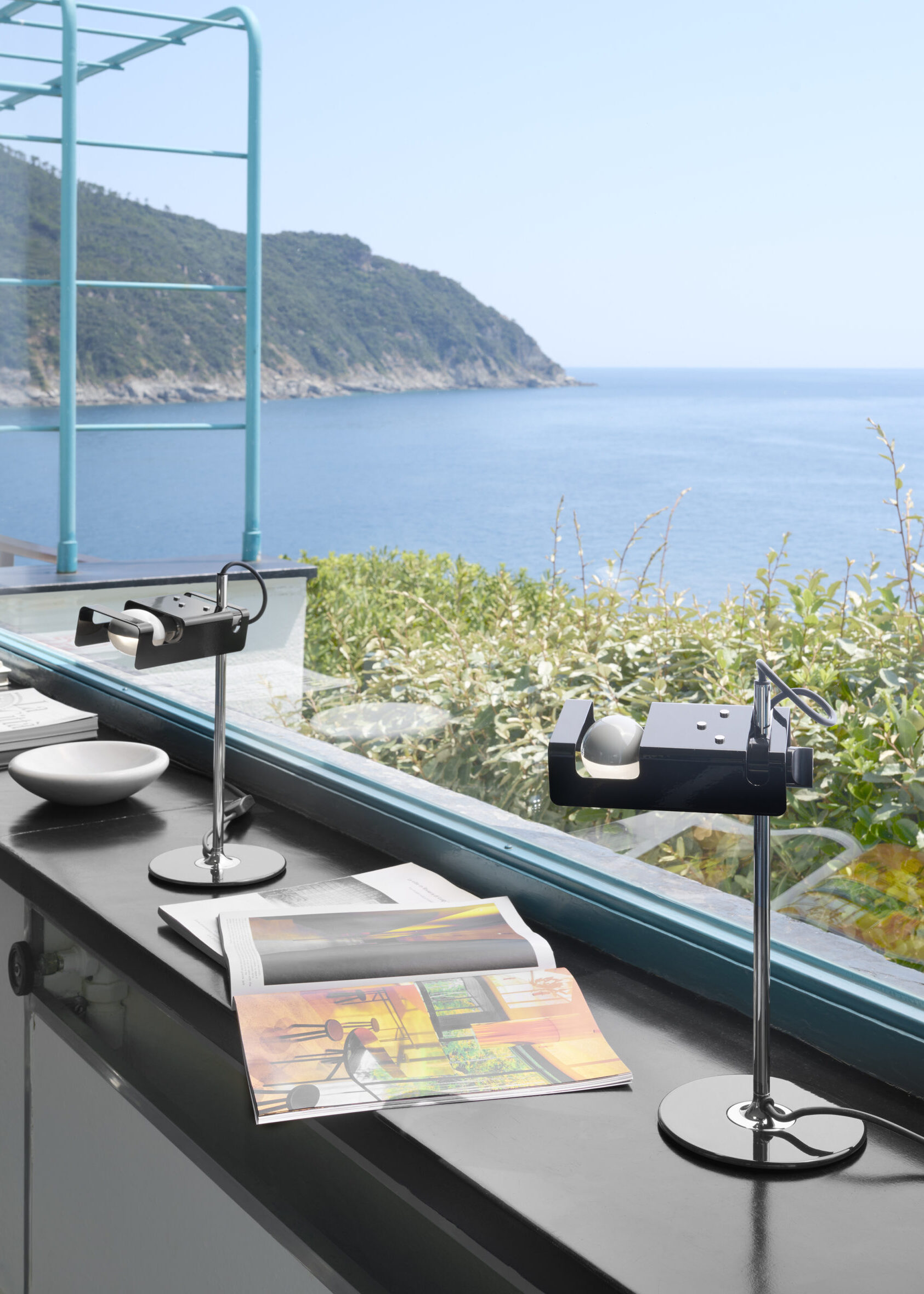 Featuring a lacquered metal base, a chromed vertical stem, and a light head inspired by the original “hammer head” shape, the Mini Spider blends technical precision with iconic design. Originally created by Joe Colombo, the legendary Spider lamp is reborn in a compact table version, re-engineered by Oluce to preserve the signature balance and detailing that made it a timeless classic.