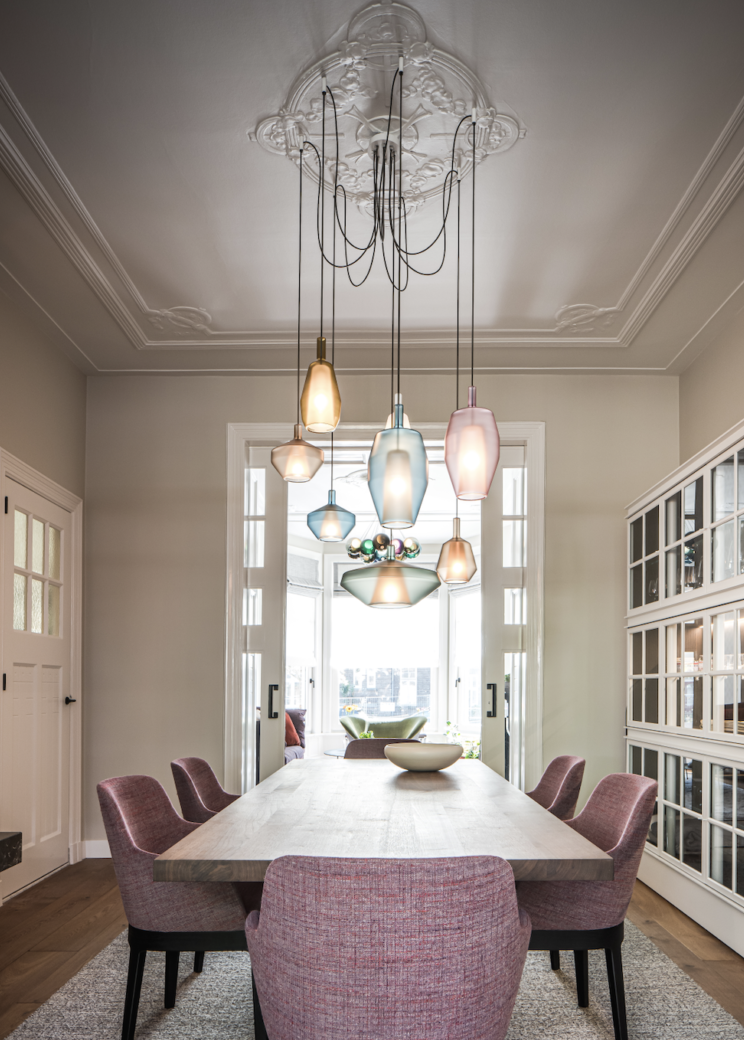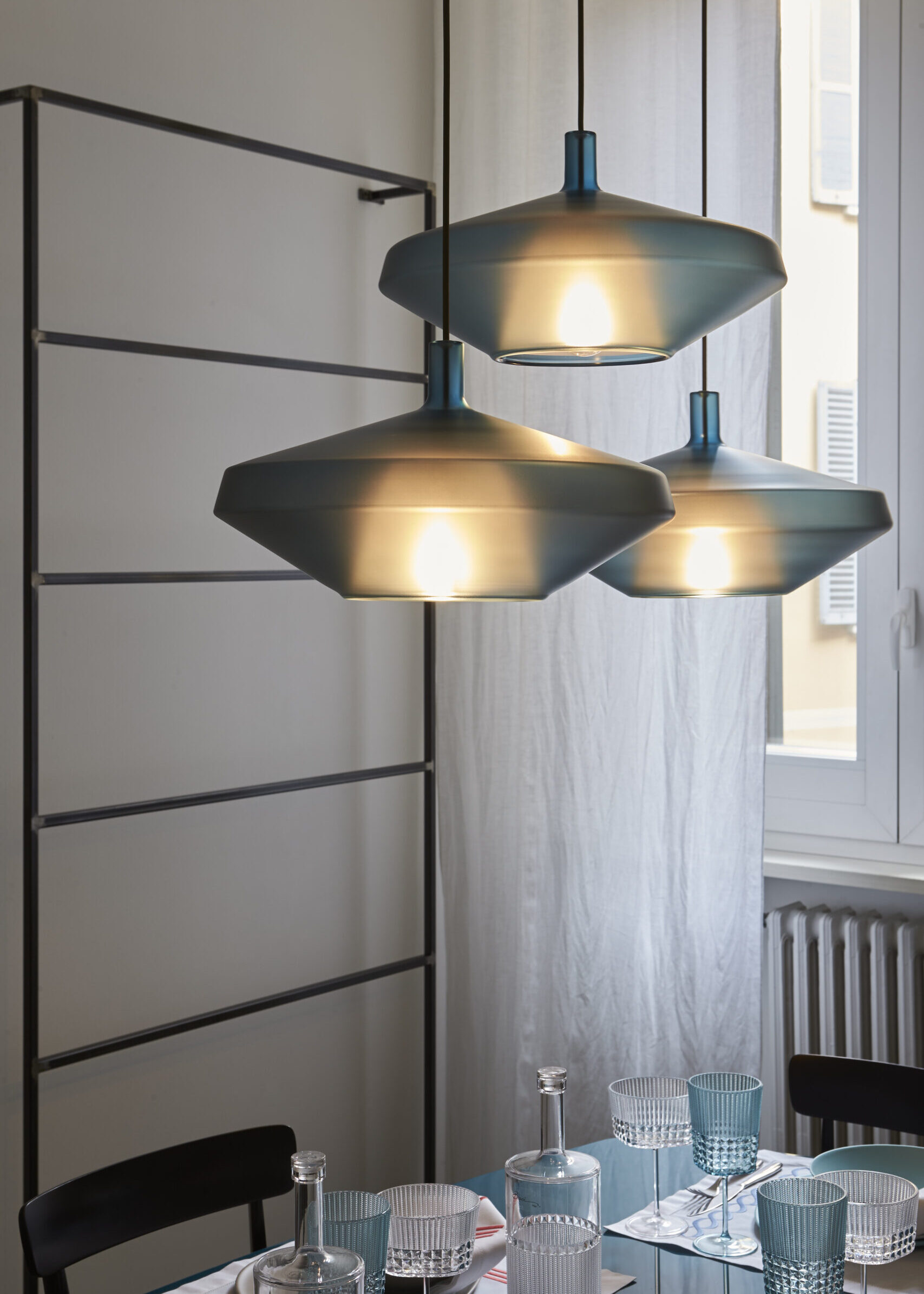 The Mom suspension lamp takes inspiration from Venetian tradition, echoing the timeless elegance of classic Murano glass vases. Its sculptural blown-glass form with refined opaque finishes brings sophistication, artistry, and a contemporary touch to modern interiors.