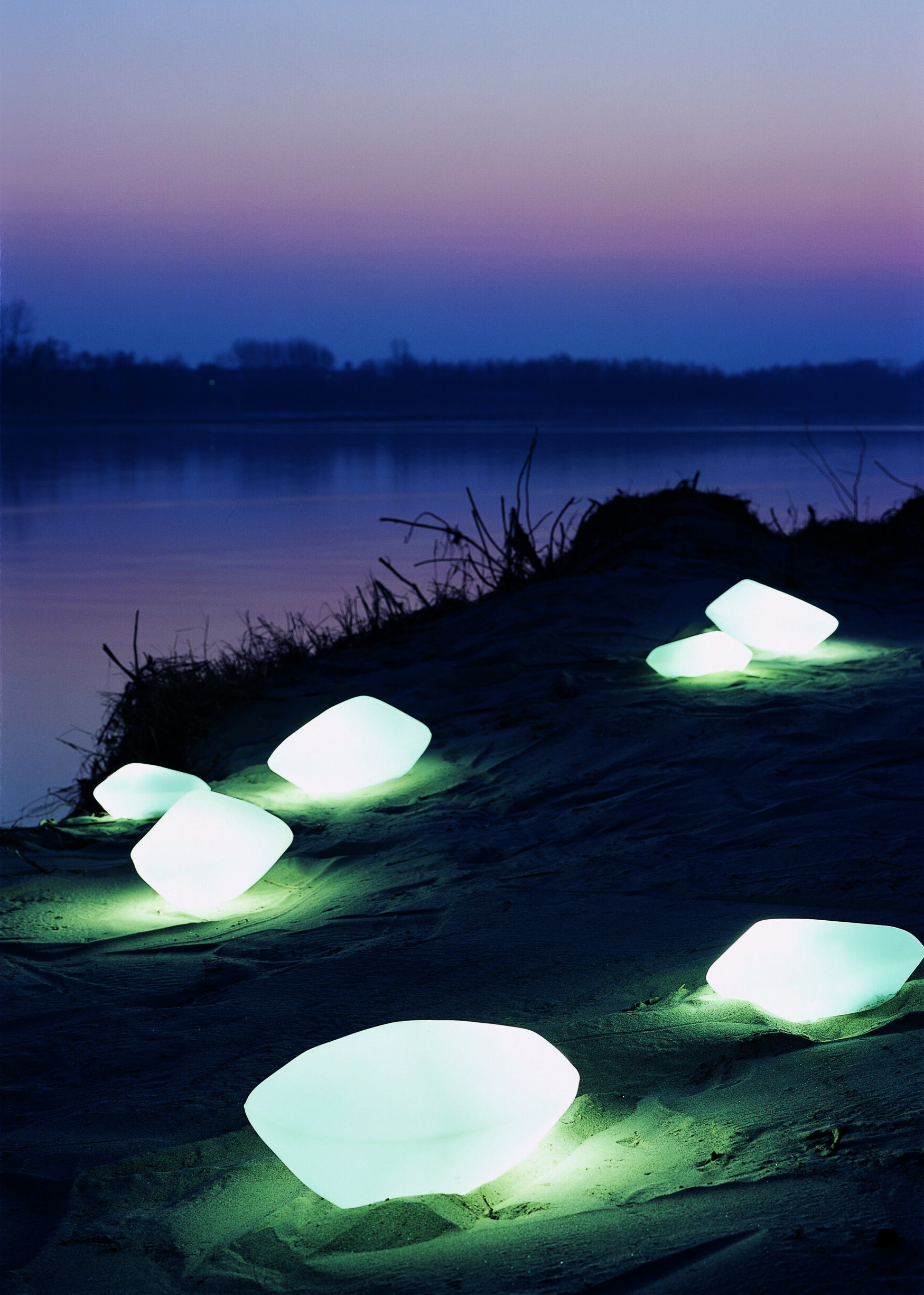 Direct descendants of the Stone of Glass collection by Laudani & Romanelli, the shapes of the Stones outdoor lamps are inspired by nature. These luminous stones, available in three different sizes, can be positioned, either alone or together, in the greenery of a garden or the intimacy of a summer terrace, to create an interplay of diffuse, captivating light.
